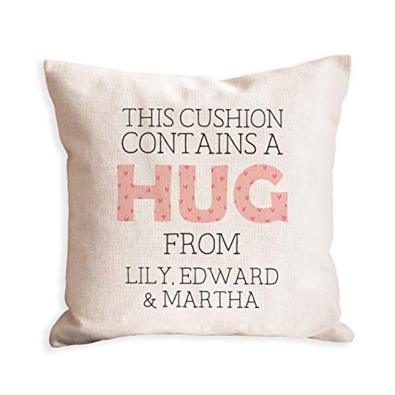 This personalised cushion from Manta Makes is thoughtfully designed for mums and loved ones, making it a comforting addition to any home. The cushion features a charming hug motif, symbolising warmth and care. Crafted with quality in mind, the cover is made from a heavyweight linen-appearance material measuring 40cm by 40cm, offering a premium feel and durability. The hollowfibre polyester filler provides gentle softness and support, ideal for relaxing moments.