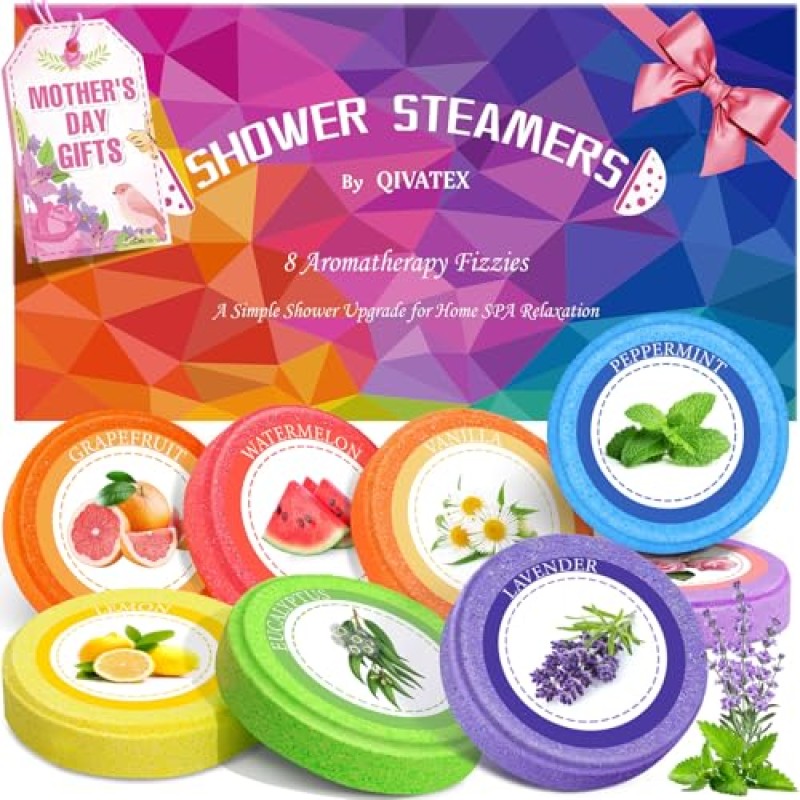 The Qivatex Aromatherapy Shower Steamers offer a gentle and practical way to bring a calming spa experience into your daily shower routine. This set includes eight handcrafted steamers fragranced with natural essential oils, featuring soothing scents such as lavender, eucalyptus, peppermint, grapefruit, rose, lemon, watermelon, and vanilla. Each steamer is made from natural ingredients including plant-based essential oils, sea salt, citric acid, and baking soda, ensuring a safe and refreshing aromatherapy experience.
